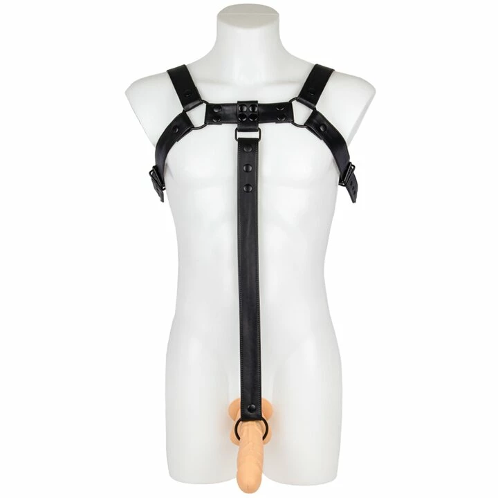 This premium bondage harness accents your masculinity in heavyset vegan leather with black fixtures for a fashionable fetish appeal. Reinforced stitching strengthens the heavy-duty strapping for an exceptionally durable finish, while poppers, buckles and O-rings fortify the garment with full adjustability.