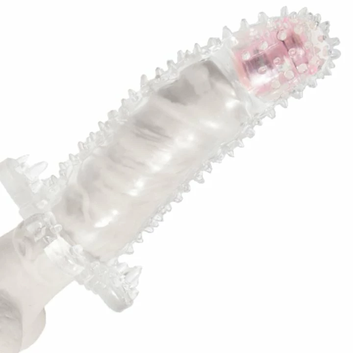 Boost your size and performance for some intense bedroom fun with this Vibrating Jelly Cock Sleeve. This sleeve is designed to fit around your erection, giving you more length and girth to play with. The material is stretchy to give a snug fit and will provide you with extra girth, a textured shaft and base, some enhanced length and a vibration motor in the tip that will buzz with every thrust and movement. So not only will you feel the benefits of this clear stretchy toy, but your partner will love it as well.